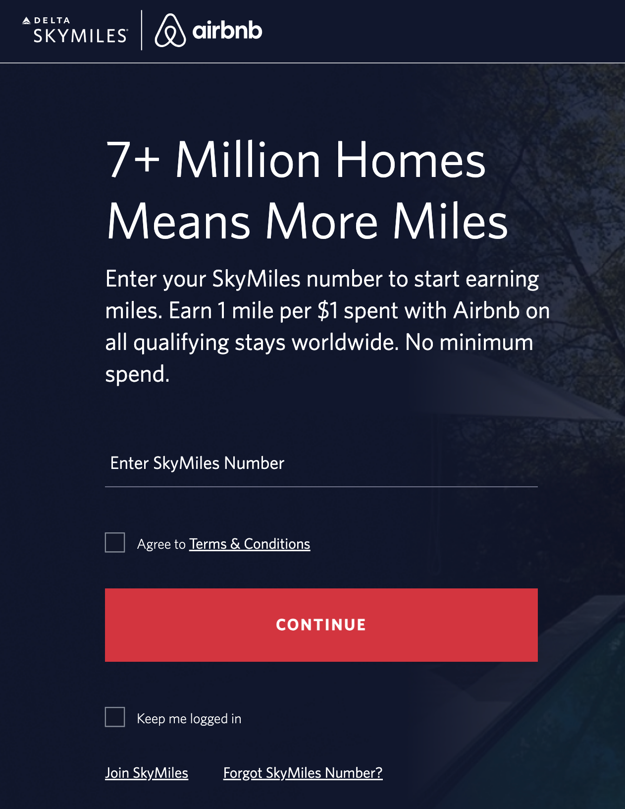 If you're a Delta loyalist, try the Delta Airbnb portal, which grants one mile per dollar spent. Similarly to the British Airways portal, you'll need your Delta membership number to connect your account to the transaction.